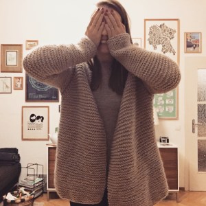 Selbst gestrickte Strickjacke